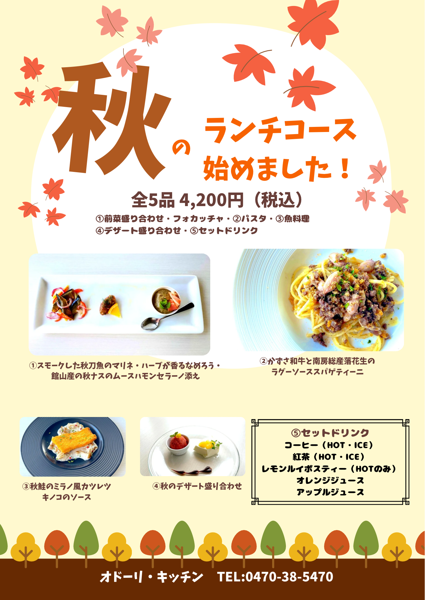 オドーリ・キッチンでは、春爛漫ランチ以降、『またやってほしい!』の声にお応えして、秋の食材をふんだんに使用した秋のランチコースをご用意いたしました!